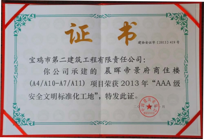 2013年度國家級“AAA級安全文明標(biāo)準(zhǔn)化工地”