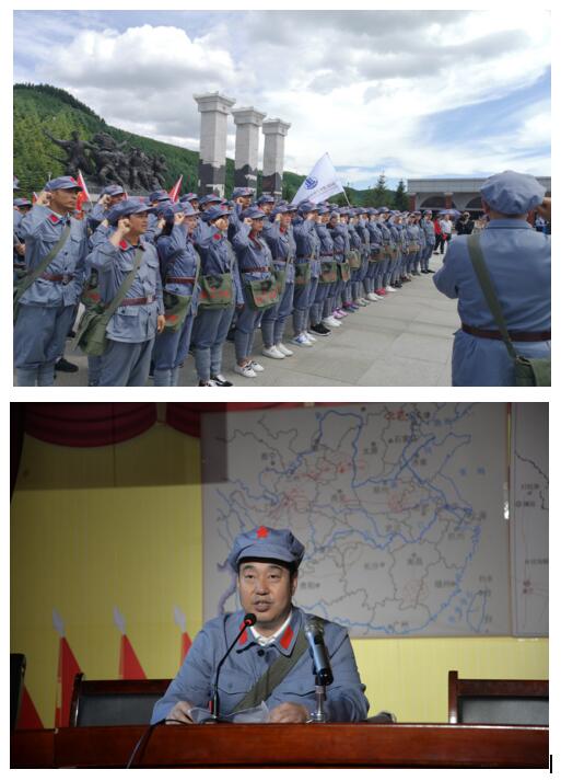 前往六盤山途中,黨員們開展了唱紅歌、講紅色故事、朗誦紅色詩詞等活動(dòng),現(xiàn)場(chǎng)氣氛十分熱烈;到達(dá)六盤山后,黨員們穿紅軍服,接過紅一、二、四方面軍軍旗,沿著象征著紅軍二萬五千里長(zhǎng)征的紅軍小道,途中經(jīng)過紅軍長(zhǎng)征經(jīng)歷的“遵義會(huì)議”、“四渡赤水”、“飛奪瀘定橋”、“巧渡金沙江”、“紅軍過草地”、“天險(xiǎn)臘子口”等大事件微縮景觀。在六盤山頂峰廣場(chǎng)三軍會(huì)師紅旗墻前,全體黨員重溫了入黨誓詞,列隊(duì)進(jìn)入紅軍長(zhǎng)征紀(jì)念館。在紀(jì)念館里,大家合唱了紅歌《歌唱祖國(guó)》,上了一次別開生面的黨課,在講解員的帶領(lǐng)下參觀革命文物陳設(shè)。再一次重溫了黨的光輝歷程,接著同志們就地吃了一頓紅軍餐,親身體驗(yàn)到了紅軍長(zhǎng)征的悲壯歷程和經(jīng)受的艱難困苦,感受偉大的長(zhǎng)征精神。