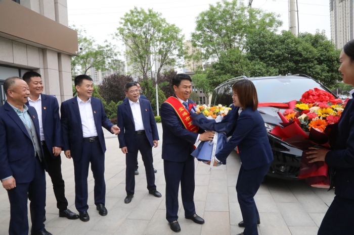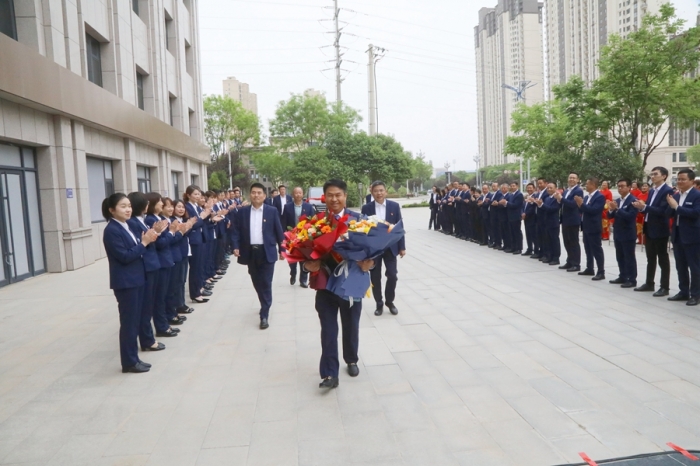 鑼鼓喧天報喜訊,鮮花掌聲迎勞模。集團公司高層領導、總部全體員工及三十九項目部員工在總部辦公大樓前迎接寶雞市五一勞動獎章獲得者李紅軍同志載譽歸來。
