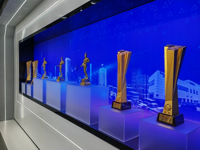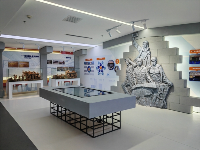 企業(yè)展覽館總面積516㎡,共分為四個展示單元,分別是:第一單元平地起高樓,主要展示集團(tuán)公司歷史沿革;第二單元風(fēng)雨筑輝煌,主要展示集團(tuán)公司壯闊征程;第三單元黨建強引領(lǐng),主要展示黨建、企業(yè)文化;第四單元公司榮譽展示;通過實物、展板、沙盤、模型、視屏、雕塑等表現(xiàn)手法,以圖、文、影、聲并茂的形式全方位呈現(xiàn)集團(tuán)公司走過的艱辛之路、創(chuàng)新之路、豪邁之路。