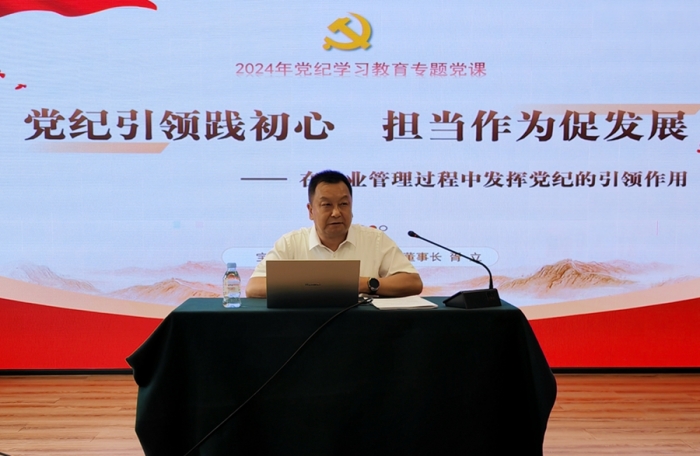 黨委書記、董事長(zhǎng)胥立講授題為《黨紀(jì)引領(lǐng)踐初心 擔(dān)當(dāng)作為促發(fā)展》的黨紀(jì)學(xué)習(xí)教育專題黨課。他從認(rèn)識(shí)黨紀(jì)的重要性、深學(xué)細(xì)悟“六項(xiàng)紀(jì)律”、加強(qiáng)黨紀(jì)建設(shè)的要求、在管理中貫徹黨紀(jì)的思考和實(shí)踐四個(gè)方面進(jìn)行了講解,并與現(xiàn)場(chǎng)人員進(jìn)行了互動(dòng)交流。